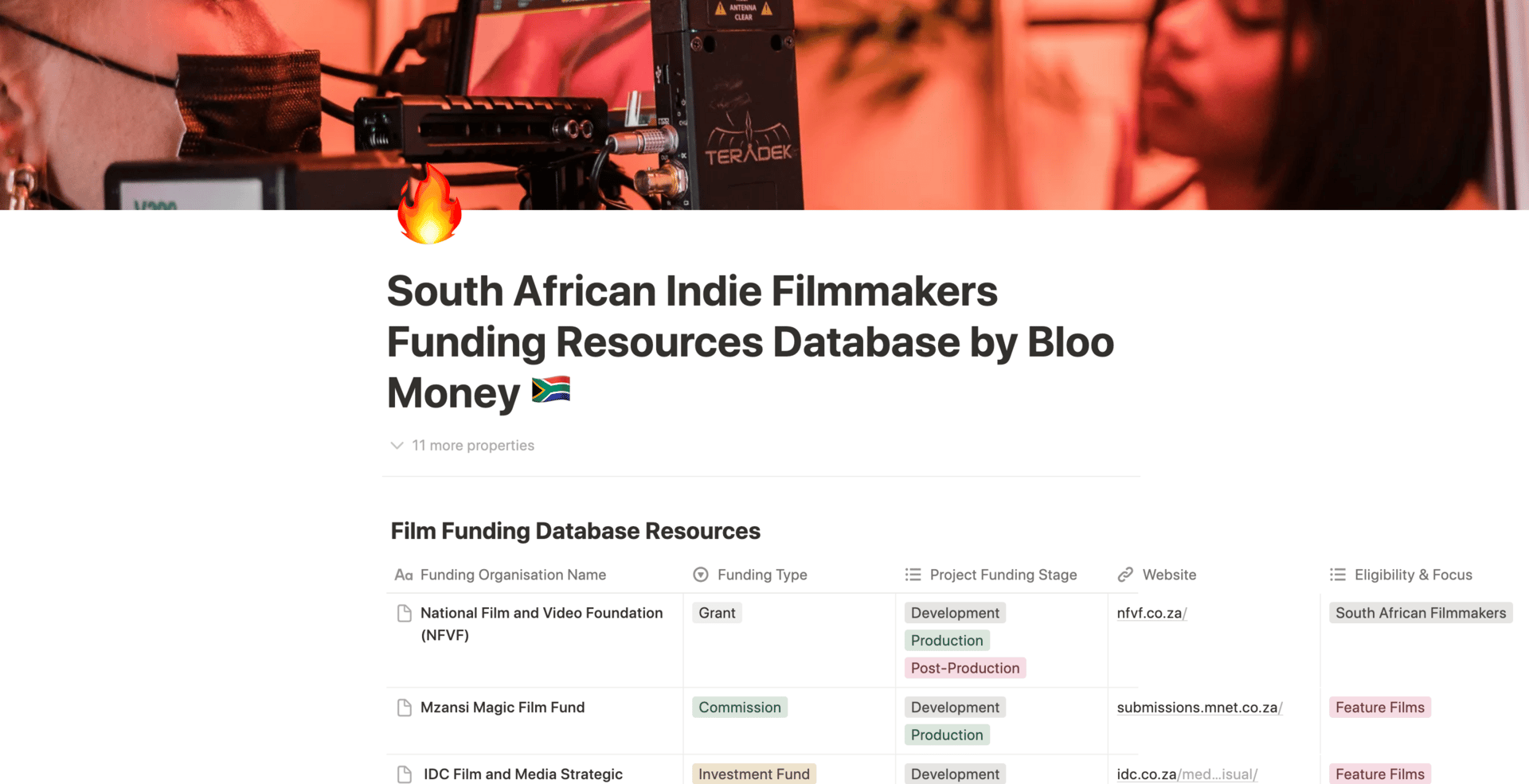 We know securing funding for your next project can be challenging — but it doesn’t have to be. That’s why we’ve put together a FREE Airtable list of film funding sources 🇿🇦.